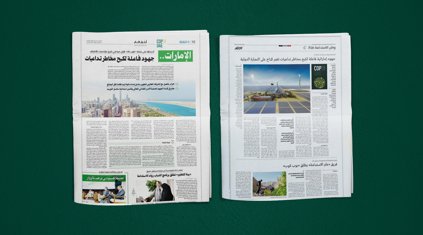 Over 165 press materials were produced as part of this project as the UAE hosted the Conference of the Parties to the UN Framework Convention on Climate Change, COP 28. In both Arabic and English, the produced material featured press releases and news reports supported by infographics.