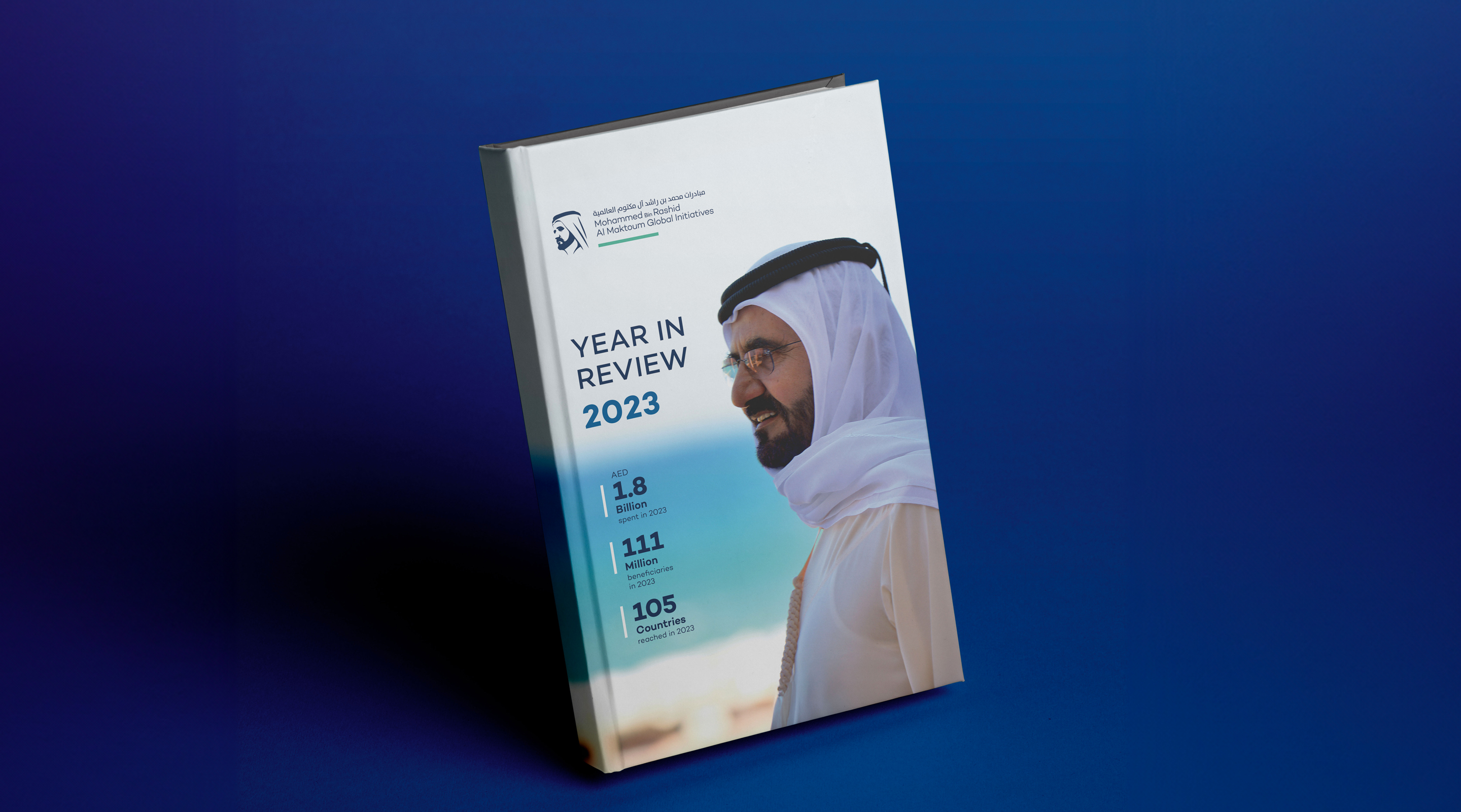 Crafting a compelling cover design for Mohammed bin Rashid Al Maktoum Global Initiatives' 2023 Year in Review book, complemented by visually engaging infographics that align seamlessly with the foundation’s branding and visual identity.