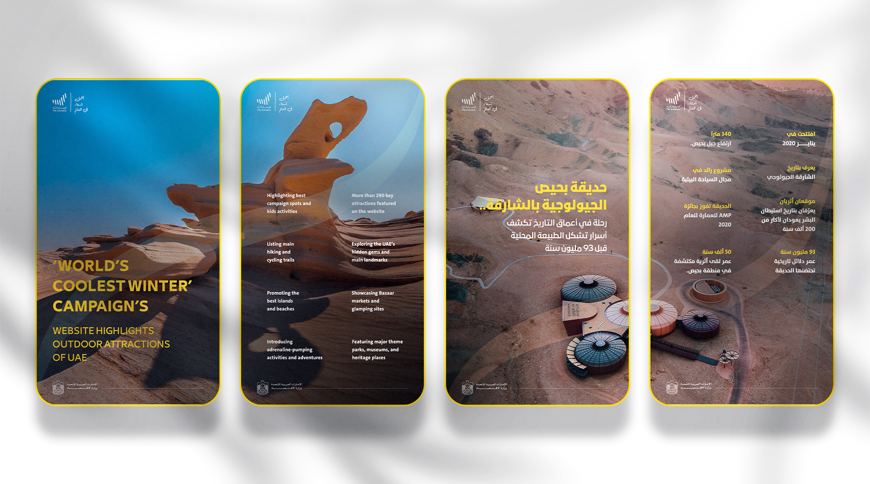 Captivating visual content and over 50 infographics and social media graphics for the Ministry of Economy social accounts helped fuel the World's Coolest Winter campaign parallel to relevant press release and feature stories. Visual content showcased the UAE's most stunning tourist destinations, enhancing news and key information with impactful imagery to drive engagement.